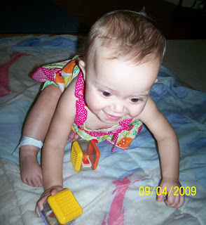 We know that you are all anxious for an update on Chloe, since her surgery. I am happy to report that she is feeling better with each day. She is still having some sleep issues, I feel like it's mostly due to the fact that she got her naps and such all messed up ( understandably ) and also some pain still in the ears. She is eating like a horse { giggle } ... and she plays a little more each day, she gets all excited and peters out quickly..but she is on the mend! Chloe will FINALLY be able to get back in the tub on Sunday, and that's one of her favorite places to be, so happy times this weekend! We can not tell you , how terribly proud we are of our little Pooh ~ she is such a brave little girl ♥
